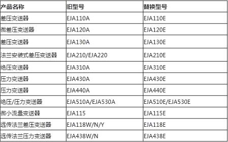 此次橫河川儀停止銷售EJA-A系列差壓(壓力)產(chǎn)品及其未來(lái)替代型號(hào),如下表所示: