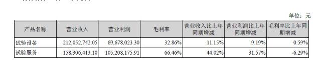 報告期內(nèi),試驗服務(wù)收入158,306,413.10元,同比增長44.02%,試驗服務(wù)收入的增長是公司營業(yè)收入增長的主要原因。