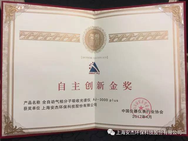 在此次595家參展廠商中,共評(píng)選出10個(gè)產(chǎn)品成為CISILE 2017自主創(chuàng)新獎(jiǎng)得主,安杰科技的AJ-3000 plus氣相分子吸收光譜儀脫穎而出,斬獲金獎(jiǎng)!