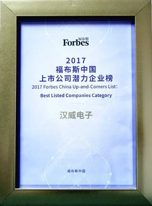5月18日,2017福布斯中國潛力企業(yè)創(chuàng)新峰會暨2017福布斯中國最具潛力企業(yè)頒獎典禮在鄭州鄭東新區(qū)舉行,約200位中國高成長企業(yè)領(lǐng)袖、中國頂級投資機構(gòu)和行業(yè)領(lǐng)袖出席。分別將榮譽授予上市公司潛力企業(yè)榜、非上市公司潛力企業(yè)榜和值得關(guān)注的新三板企業(yè)等三張榜單中的上榜企業(yè)。漢威電子躋身福布斯最具潛力企業(yè)榜,并參加頒獎典禮。