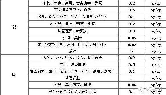 國家標準GB2762-2005《食品污染物限量要求》中對鎘、鉛的限量要求如表7所示: