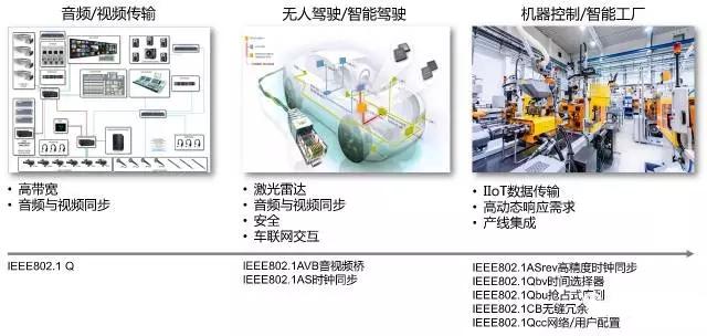 圖3-TSN技術從音頻視頻-無人駕駛汽車到IIoT的集成發(fā)展