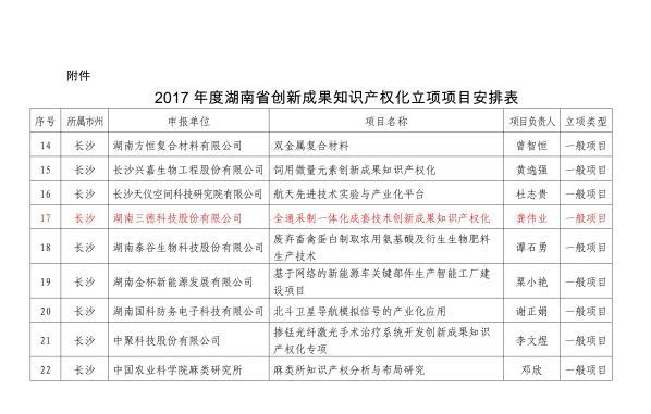 2017年度湖南省創(chuàng)新成果知識(shí)產(chǎn)權(quán)化立項(xiàng)項(xiàng)目安排表