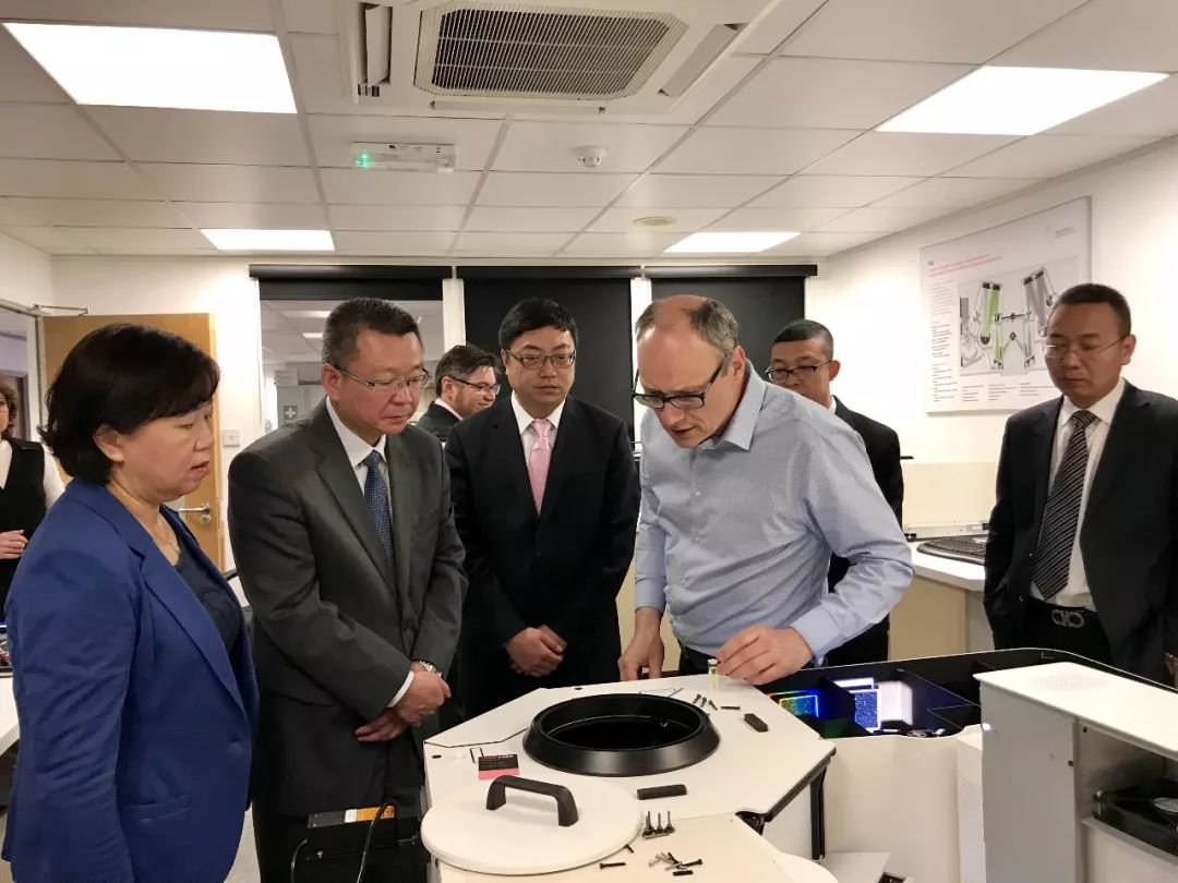 4月15日高玉清一行前往英國愛丁堡儀器公司Edinburgh Instruments訪問。該公司與瑞士普利賽斯公司同屬一家香港上市公司,是一家專注于生產(chǎn)和研發(fā)高性能研究級光譜儀的公司。主要產(chǎn)品為熒光壽命光譜儀和氣體傳感器。該公司CEO Roger Fenske博士和研發(fā)經(jīng)理Dirk Nather進(jìn)行了接待,并對公司發(fā)展做了總體展示,高玉清一行饒有興致地聽取了Dirk Nather對自己鐘愛的技術(shù)和主要產(chǎn)品的原理、性能及應(yīng)用等方面的詳盡介紹,并實(shí)地觀看了其應(yīng)用實(shí)驗室中樣機(jī)的測試過程。