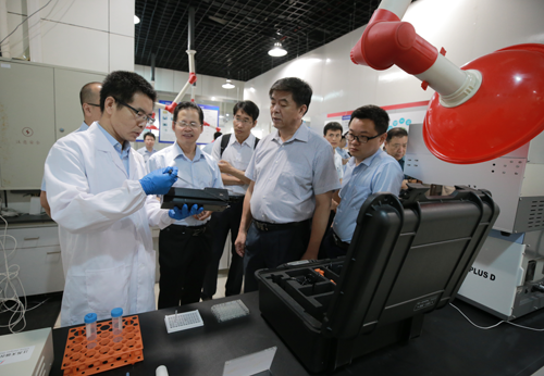 技術人員向專家組介紹便攜式X熒光光譜儀