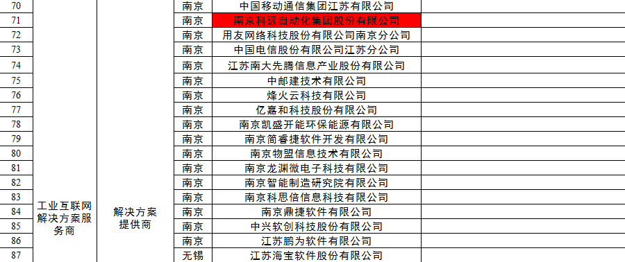 根據《關于組織構建江蘇省工業互聯網服務資源池的通知》(蘇經信企信〔2018〕223號)精神,經各地審核推薦、專家評審、實地考察等環節,科遠股份作為工業互聯網平臺服務商、工業互聯網解決方案服務商、數據采集服務商,入圍江蘇省工業互聯網服務資源池(第一批)。