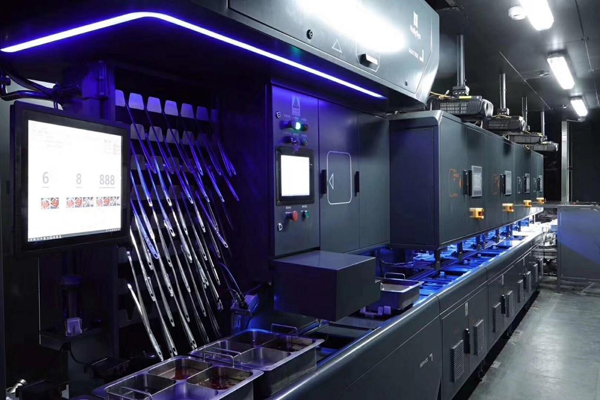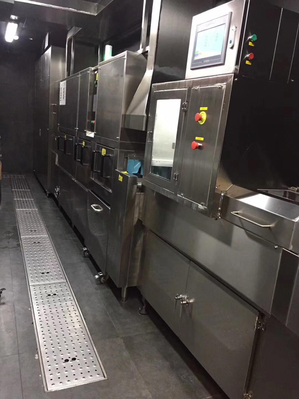 在海底撈首家智慧餐廳中,除了自動配鍋機以外,和利時還為海底撈提供了一條全自動無人清洗線,這在海底撈全球現有的300多家門店中也屬首次嘗試。全自動清洗線實現了從臟鍋入口開始,到自動清洗、檢測、鍋型識別、分類入庫、紫外線消毒、按訂單出庫等全流程自動化,無需人為干預。全自動無人清洗線大大提高了洗鍋出鍋效率,減少了后廚人員,保證了鍋具衛生滿足食品安全要求。