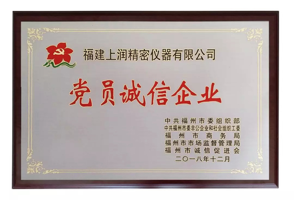 為深入貫徹習近平新時代中國特色社會主義思想和黨的十九大精神,以提升商業(yè)信用形象為目標,緊密結(jié)合時代有福之州發(fā)展實際,充分發(fā)揮非公企業(yè)黨組織和廣大黨員在社會誠信建設(shè)中的示范引領(lǐng)作用,福州市委組織部等多部門聯(lián)合開展“黨員誠信企業(yè)”創(chuàng)建活動,著力打造具有福州特色的信用產(chǎn)業(yè)高地,實現(xiàn)黨建工作和經(jīng)濟社會發(fā)展良性互動。福建上潤精密儀器有限公司作為誠信經(jīng)營的優(yōu)秀企業(yè)代表獲得了“黨員誠信企業(yè)”稱號。