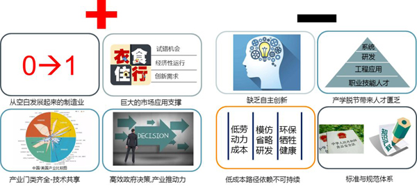 然而,我們也必須看到我們所面臨的挑戰,存在一些問題,我們不必妄自菲薄,但要有清晰認識,我們在自主創新方面仍然有待提高,依賴于傳統低勞動成本、模仿省略研發成本缺失去創新能力、犧牲環保的發展路徑也是不可持續的。國家也越發重視社保的投入與監管,不斷加強知識產權的保護,以及在環保方面的力度,這些都使得我們原來那些依賴低價優勢的企業必須要去轉型。人才是一個基礎話題,今天我們要發展人工智能、智能制造、工業互聯網都需要大量的高品質人才,包括現場的高技能職業工人。