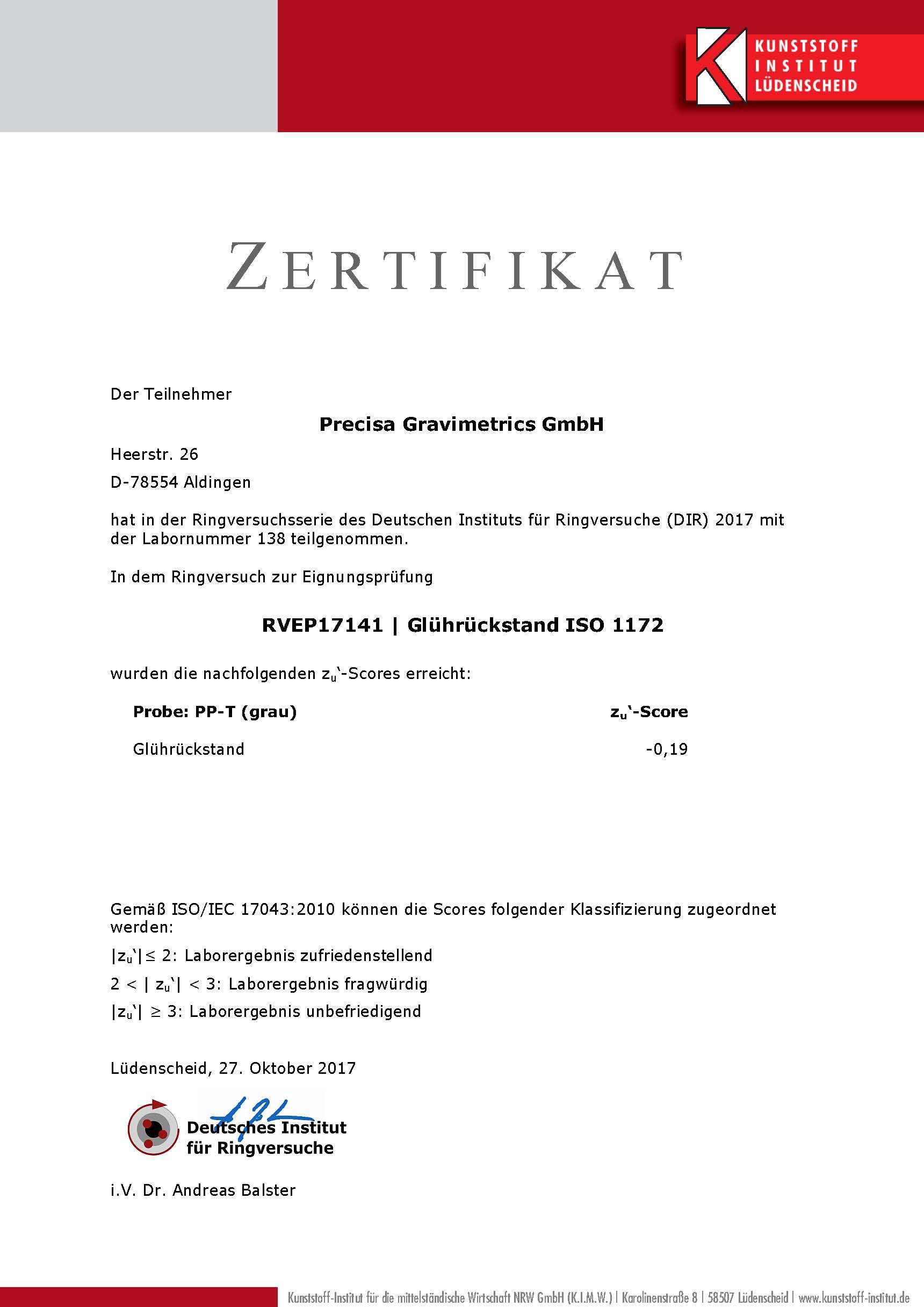 灰分含量的測試方法依據國際標準DIN EN ISO 1172,采用高溫煅燒的方法對兩種增強塑料樣品進行灰分含量的測定。測試結果及prepASH檢測合格證書如下: