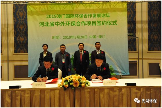 當日下午,“2019澳門國際環(huán)保合作發(fā)展論壇 河北省中外環(huán)保合作項目簽約儀式”在澳門巴黎人酒店隆重舉行,高建民廳長一行出席先河環(huán)保戰(zhàn)略合作簽約項目座談會暨合作簽約儀式。