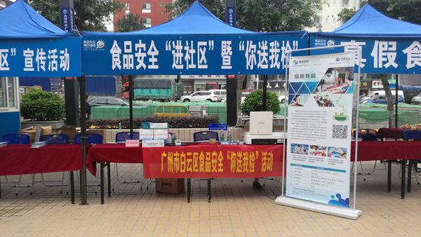 5月14號,為提高廣大消費者的食品安全意識,守護白云區的食品安全環境,廣東中檢達元檢測技術有限公司(簡稱中檢達元)受廣州市白云區市場監督管理局委托,前往白云區大源商業廣場,開展食品安全“進社區”暨“你送我檢”活動,現場免費為群眾快速檢測食品。