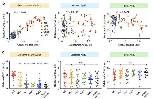 圖3:外泌體結合的Aβ蛋白與認知程度呈顯著的相關性。圖片來源:參考文獻1