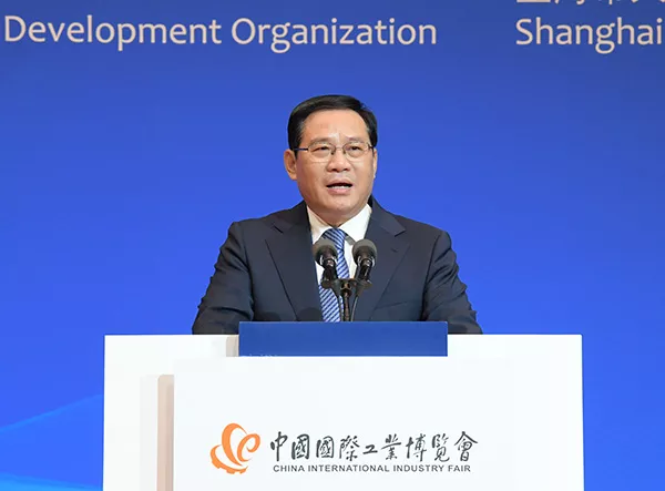上圖為李強(qiáng)宣布第21屆工博會(huì)開幕。