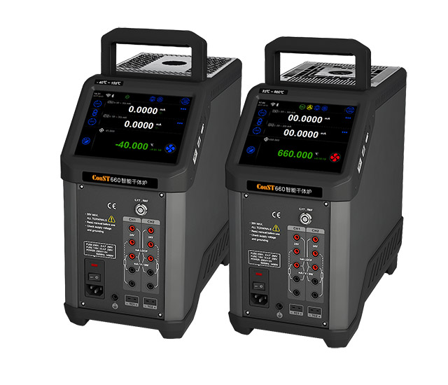 康斯特公司在2017年進(jìn)行了干體式溫度校準(zhǔn)器的技術(shù)研發(fā),推出了最新一代智能溫度校準(zhǔn)設(shè)備。ConST660應(yīng)用多項(xiàng)創(chuàng)新技術(shù),具有升降溫速度快、抗干擾能力強(qiáng)、環(huán)境適應(yīng)性好,控溫區(qū)間寬,溫場均勻性好等特點(diǎn),采用全觸屏操作,伸縮式提手設(shè)計(jì),支持外置標(biāo)準(zhǔn)RTD控溫方式,同時具備兩個被檢通道。ConST660的出現(xiàn)有望改變了國外產(chǎn)品在我國一枝獨(dú)秀的銷售局面。