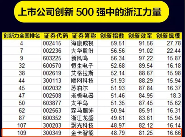 近日,2019年中國上市公司創(chuàng)新指數(shù)500強(qiáng)與2019年浙江省百強(qiáng)企業(yè)榜單相繼發(fā)布,金卡智能均榜上有名。