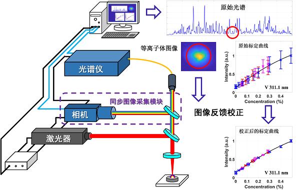 激光誘導等離子體是獲得LIBS光譜的光源,其形貌和強度的變化是導致LIBS光譜波動的直接原因。該研究團隊將激光誘導等離子體圖像引入到LIBS光譜穩定性校正建模中,通過同步采集LIBS光譜和相應的等離子體圖像,以等離子體圖像特征的差異作為反饋信號對相應的特征譜線強度進行補償與校正,校正后的LIBS特征譜線穩定性得到極大提升,為LIBS在線檢測應用提供了更可靠的光譜數據。