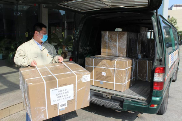 繼大年初一將第一批實驗室研究用熒光顯微鏡火速發往災區外,今天下午,公司又有一批顯微鏡馳援湖北。此次是向湖北多家發熱門診及定點治療三甲和高等級醫院,捐贈出價值83萬元共計12臺套病毒實驗分析顯微鏡,用于抗擊新型冠狀病毒。
