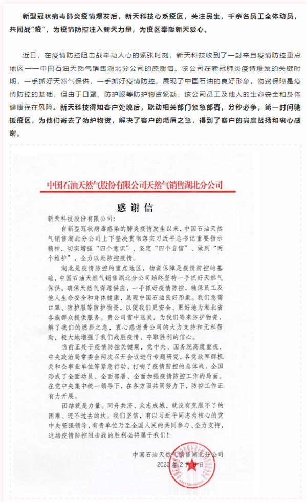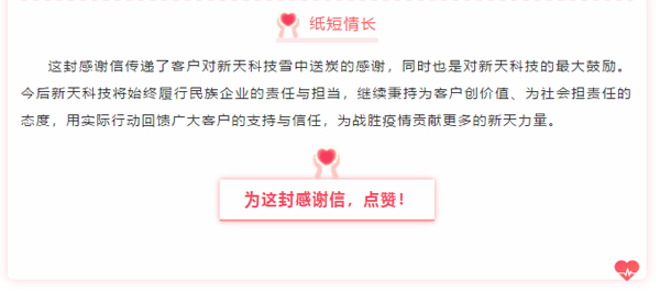 新天科技榮獲高度贊譽!一封感謝信,濃厚攻堅情