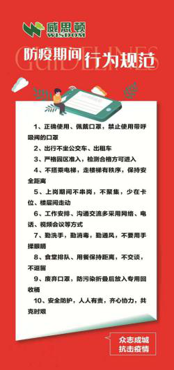 自疫情發生以來,市、區黨委政府和集團黨委高度重視,多次指導、督促公司開展疫情防控工作。1月26日開始,威思頓領導班子第一時間即著手研究、策劃疫情防控工作。根據集團公司黨委統一部署,威思頓成立了以董事長總經理為組長、領導班子其他成員為副組長、各部門負責人為組員的疫情防控領導小組,下設11個支隊、每個支隊下設5個小隊。雙管齊下,統籌安排,一手強抓人員排查、門禁管理、日常防控、應急管理等疫情防控工作落實,一手強化安全生產管理,嚴控各項風險,確保公司穩定運營和安全生產。