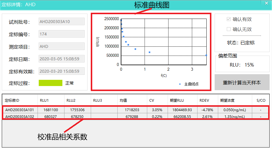 通過呋喃四項校準(zhǔn)品發(fā)光值進(jìn)行算法擬合出當(dāng)天標(biāo)準(zhǔn)曲線, 校準(zhǔn)品各詳細(xì)參數(shù)均在下圖中,校準(zhǔn)品變異系數(shù)均小于5%。