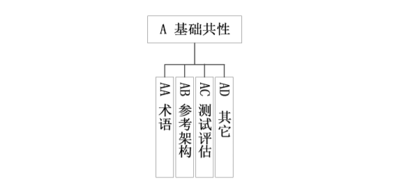 基礎共性標準主要針對人工智能基礎進行規(guī)范, 包括術語、 參考架構、 測試評估等部分, 如下圖所示。