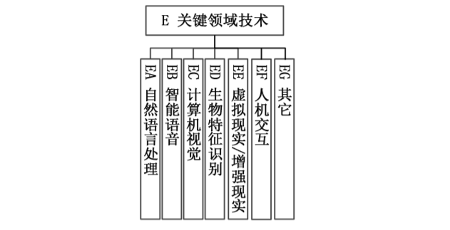 E 關鍵領域技術標準主要圍繞自然語言處理、 智能語音、計算機視覺、 生物特征識別、 虛擬現(xiàn)實/增強現(xiàn)實、 人機交互等方面, 為人工智能應用提供領域技術支撐;