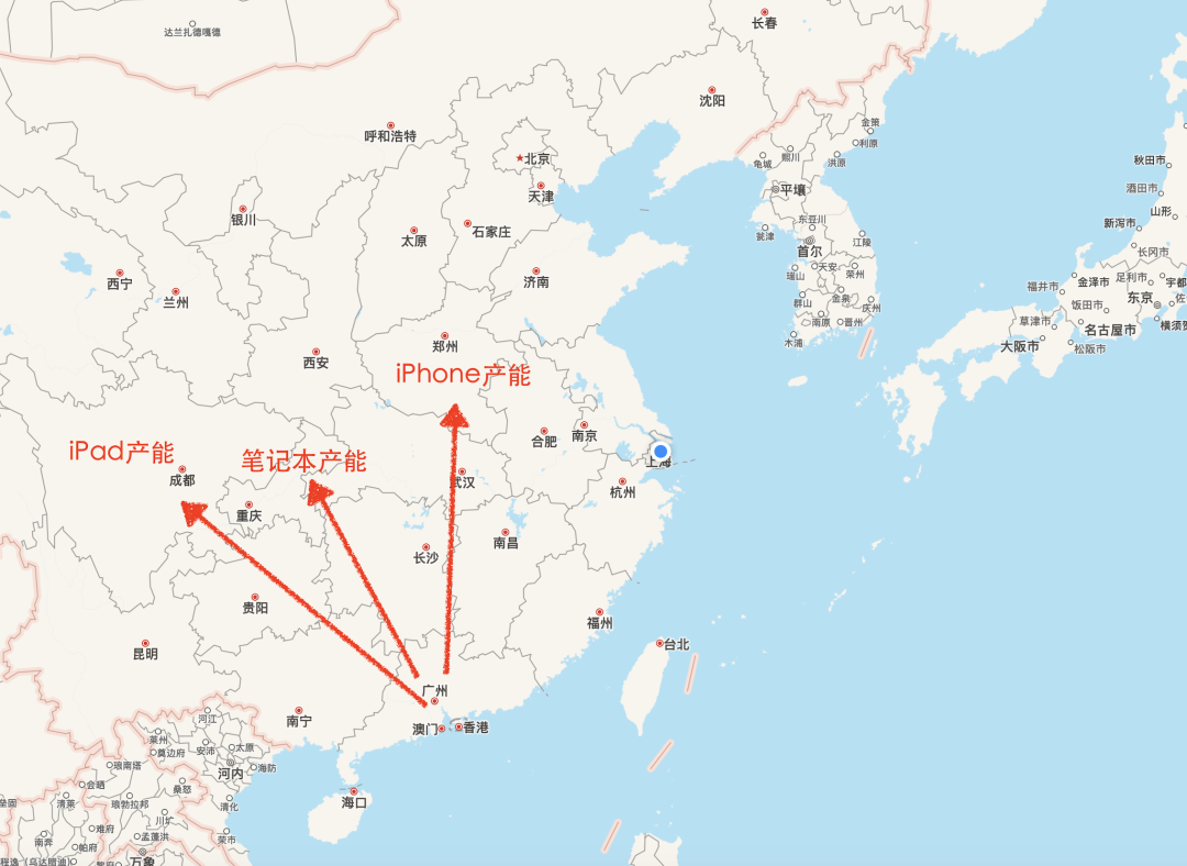 結果就是,電子產業(yè)鏈雖然部分離開我國東部沿海,但又大部分被中西部承接:四川生產了全球70%的iPad,河南生產了一半以上的iPhone,重慶則包攬了40%的筆記本電腦。三個省市的電子工業(yè)產值合計超過2萬億,相當于整個越南的GDP。