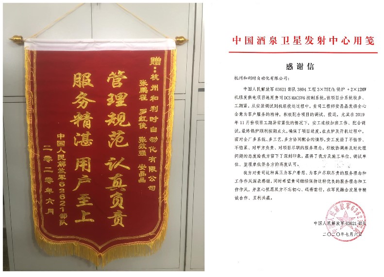 2020年,酒泉衛(wèi)星發(fā)射中心智慧電廠項(xiàng)目順利開車,客戶對(duì)和利時(shí)專業(yè)精神和態(tài)度給予極大地認(rèn)可和稱贊,并分別向項(xiàng)目人員張樹強(qiáng)、康管星、張鵬程、趙偉、羅紅俊、安晶晶發(fā)來表揚(yáng)信。