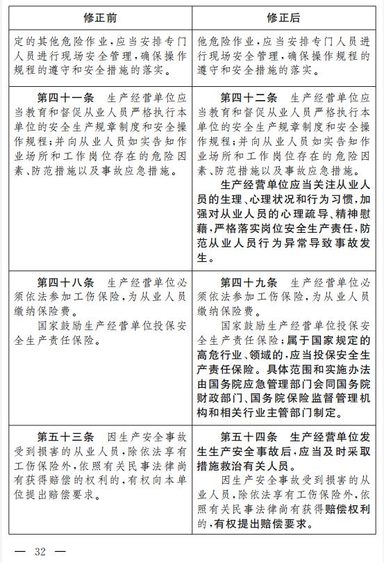 十二、將第四十一條改為第四十二條,增加一款,作為第二款:“生產(chǎn)經(jīng)營單位應(yīng)當(dāng)關(guān)注從業(yè)人員的生理、心理狀況和行為習(xí)慣,加強(qiáng)對從業(yè)人員的心理疏導(dǎo)、精神慰藉,嚴(yán)格落實崗位安全生產(chǎn)責(zé)任,防范從業(yè)人員行為異常導(dǎo)致事故發(fā)生。”