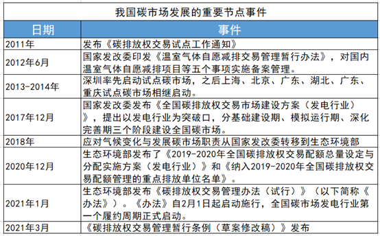 縱觀我國碳市場的發展歷程,不難看出,我國碳市場建立在2013~2014年推出的7個碳排放權交易試點的經驗基礎上。