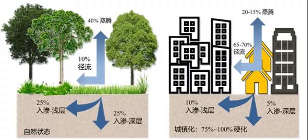 城市開發建設對水文循環過程的影響主要是雨水徑流。海綿城市建設的目的就是要在城市建設區域空間內保護和恢復自然的水文特征,其實質是恢復原始降雨徑流狀態,核心在于控制徑流。
