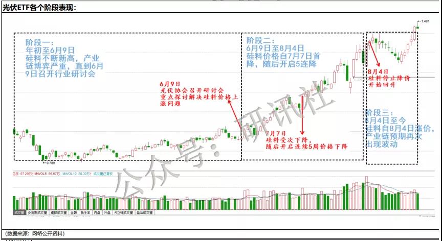 階段三(2021.8.4-至今):硅料漲,板塊漲。未來潛在需求旺盛可能使得下游逐漸接受高價。