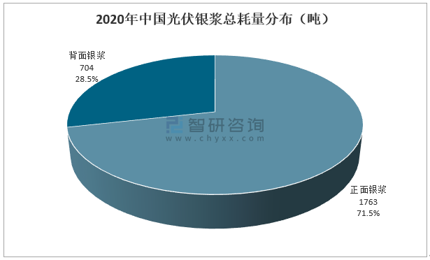 其中正面銀漿消耗量為1763噸,占中國(guó)光伏銀漿總耗量的71.5%;背面銀漿消耗量為704噸,占中國(guó)光伏銀漿總耗量的28.5%。