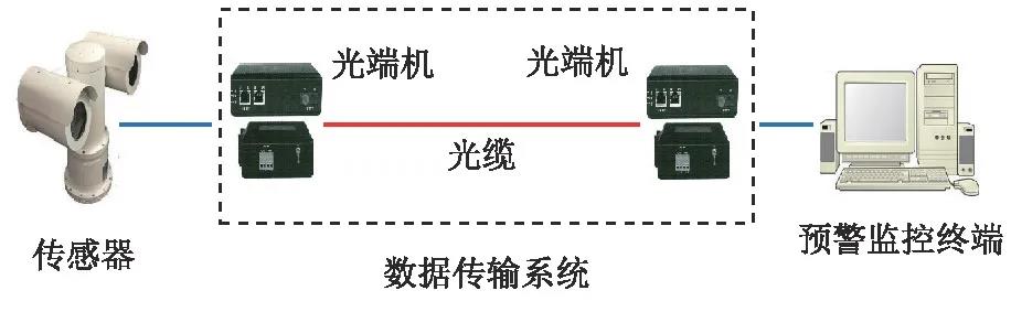 數據傳輸系統負責前端激光氣體傳感器與后端預警監控終端之間信號的傳輸。其中前端傳感器向后端傳輸的信號為:激光檢測模塊的濃度數據信號;三維旋轉云臺實時返回的云臺動作信號;視頻監控模塊采集的工藝現場視頻信號。預警監控終端通過向前端傳感器發送指令信號控制傳感器的運行。