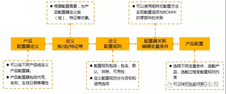模塊化設(shè)計(jì)完成之后,可以按照之前定義的配置規(guī)則,基于產(chǎn)品平臺(tái)的超級(jí)BOM,定義許可的選項(xiàng)/選項(xiàng)集,定義選項(xiàng)之間的關(guān)系和約束,形成一系列可供市場(chǎng)選用的配置資源。為后續(xù)的模塊驗(yàn)證與市場(chǎng)推廣提供有效的數(shù)據(jù)支持。