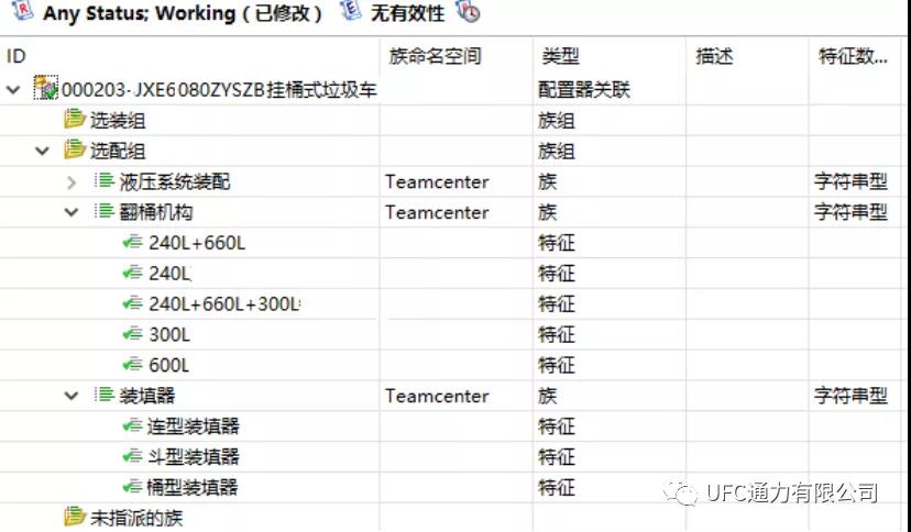 在產(chǎn)品配置器創(chuàng)建族、組、特征。特征為各種可選項(xiàng)的值,族為各種選項(xiàng),族組用于按某種標(biāo)準(zhǔn)組織各種族。除此之外產(chǎn)品配置器還可以掛接產(chǎn)品線、產(chǎn)品模型對(duì)象,用于選項(xiàng)過(guò)濾。