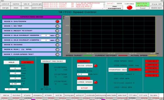 汽輪機(jī)作為原動(dòng)機(jī),汽輪機(jī)啟動(dòng)階段的轉(zhuǎn)速控制,根據(jù)汽輪機(jī)主機(jī)廠提供的升速曲線,進(jìn)行升速控制。在機(jī)組暖機(jī)升速、過(guò)臨界轉(zhuǎn)速、進(jìn)入工作轉(zhuǎn)速和降速停機(jī)過(guò)程中,要投入壓縮機(jī)調(diào)速控制。在機(jī)組控制系統(tǒng)中預(yù)先存儲(chǔ)壓縮機(jī)的升速曲線,根據(jù)預(yù)設(shè)的轉(zhuǎn)速,將轉(zhuǎn)速目標(biāo)值轉(zhuǎn)換為轉(zhuǎn)速PID的給定值,保證機(jī)組穩(wěn)定工作在額定轉(zhuǎn)速。