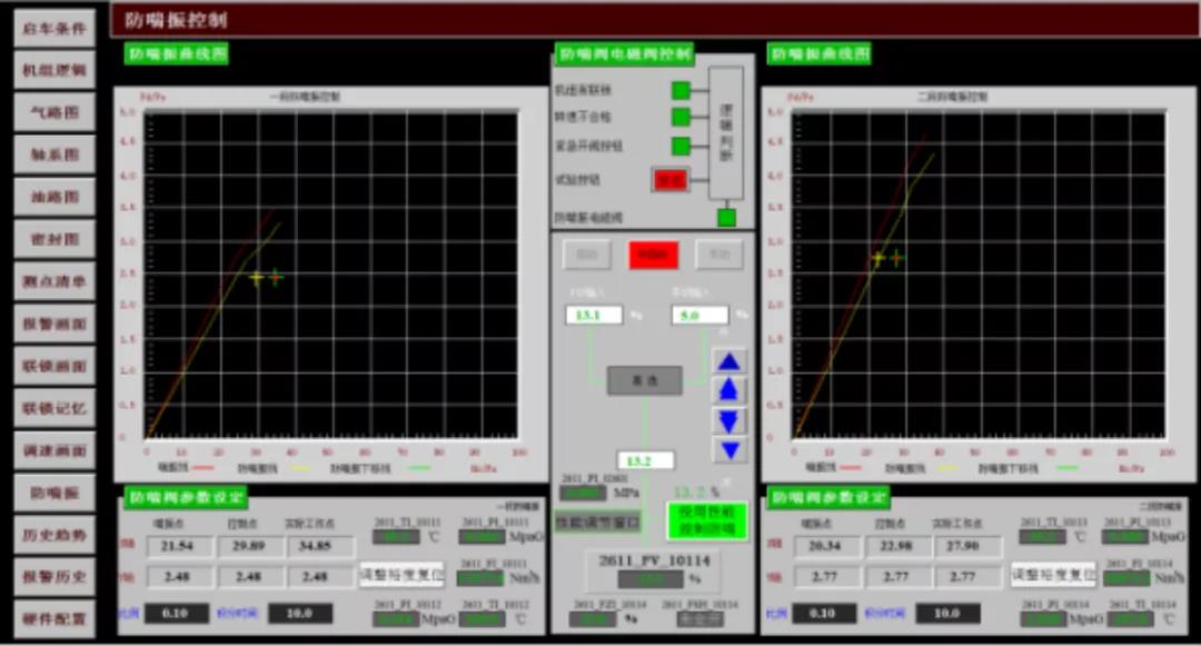 在機(jī)組啟動(dòng)和停機(jī)過(guò)程中,由于機(jī)組流量過(guò)低,如果沒(méi)有防喘振控制,就會(huì)因喘振的發(fā)生對(duì)機(jī)組造成損壞。