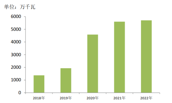 2022年,全國風電機組產量5703.8萬千瓦,同比增長1.9%。其中單機容量3-7MW(不含7MW)機組約占風電機組產量的85%。陸上風電機組大型化引領全球,6MW機組成為主流機型,并先后下線了8MW、9MW、10MW陸上機組;海上風電機組迭代速度加快,10MW機組成為主流機型,16MW機組下線,海上風電機組步入“超大”時代。
