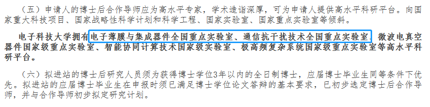 據(jù)電子科技大學(xué)發(fā)布的《電子科技大學(xué)誠邀優(yōu)秀青年科技創(chuàng)新人才申報2023年國家“博新計劃”》介紹,電子科技大學(xué)擁有“電子薄膜與集成器件全國重點實驗室”和“通信抗干擾技術(shù)全國重點實驗室”。