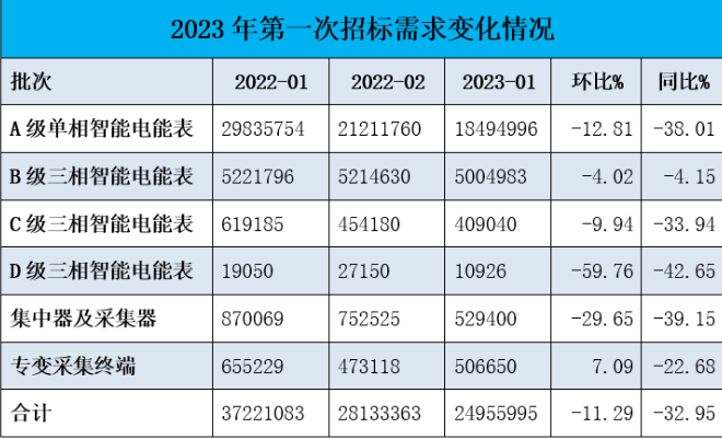 從需求量的同比和環(huán)比數(shù)據(jù)來(lái)看,除專變采集終端(含能源控制器專變)分標(biāo)環(huán)比需求量有增長(zhǎng)外,其他物資需求量都下降。