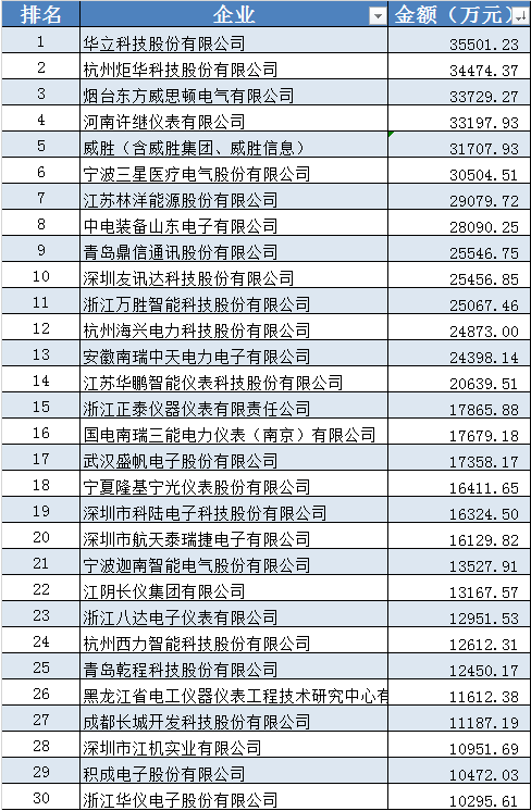 06月02日,國(guó)網(wǎng)2023年第一次電能表 (含用電信息采集) 招標(biāo)采購(gòu)?fù)扑]的中標(biāo)候選人公示信息發(fā)布,本次招標(biāo)最終總中標(biāo)金額為90.18億元,環(huán)比下降11.34%,同比下降32.10%;總共有80家企業(yè)實(shí)現(xiàn)中標(biāo),其中電能表分項(xiàng)中標(biāo)企業(yè)共68家,用電信息采集分項(xiàng)中標(biāo)企業(yè)40家。本次中標(biāo)金額前五名企業(yè)為華立科技股份有限公司、杭州炬華科技股份有限公司、煙臺(tái)東方威思頓電氣有限公司、河南許繼儀表有限公司、威勝(含威勝集團(tuán)、威勝信息)。