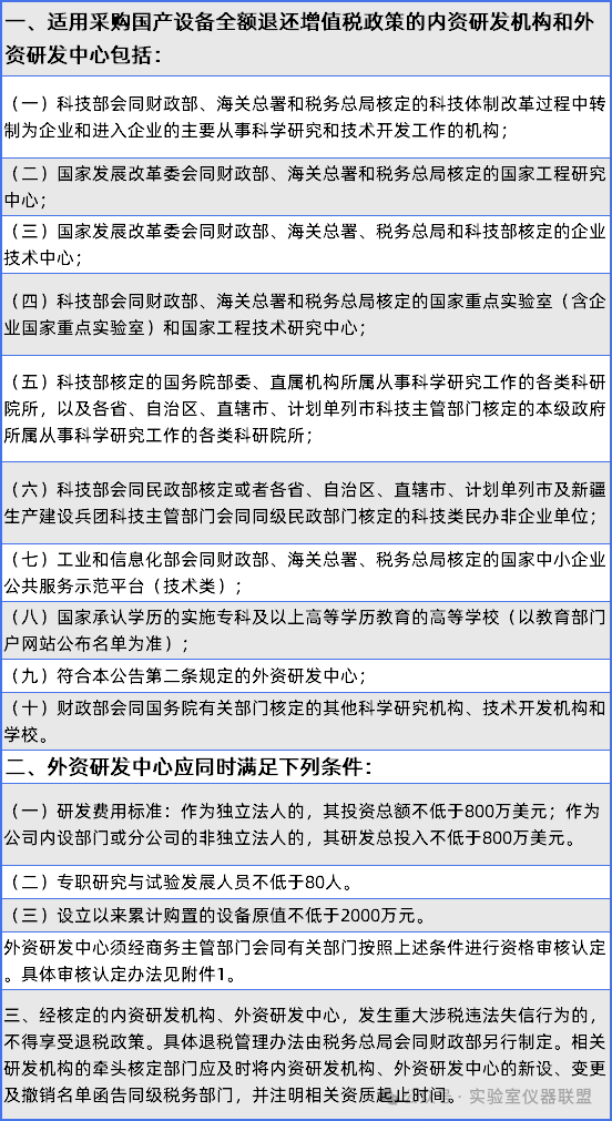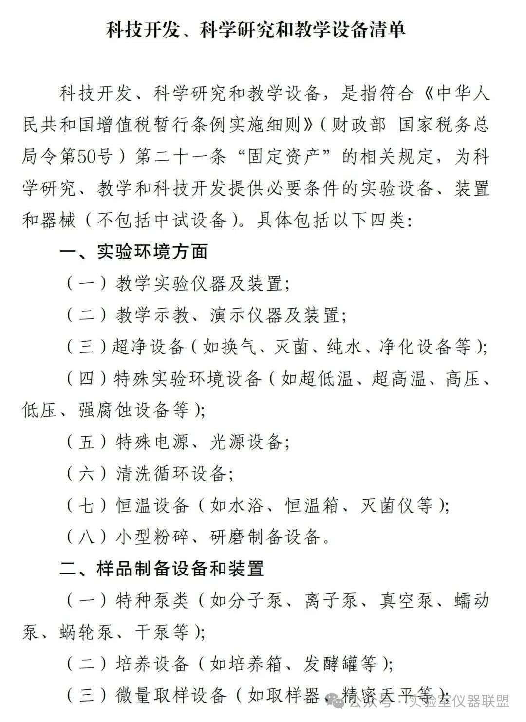 涉及全額退還增值稅的相關設備清單,也在財政部、商務部、稅務總局三部門去年8月印發的《關于研發機構采購設備增值稅政策的公告》中做了詳細公布。