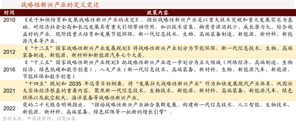 ●戰(zhàn)略性新興產(chǎn)業(yè):根據(jù)最新定義,戰(zhàn)略性新興產(chǎn)業(yè)主要包含新一代信息技術(shù)、人工智能、生物技術(shù)、新能源、新材料、高端裝備、綠色環(huán)保等領(lǐng)域。