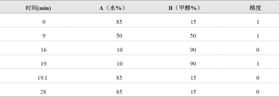 熒光檢測器:激發波長:330nm;發射波長:465nm