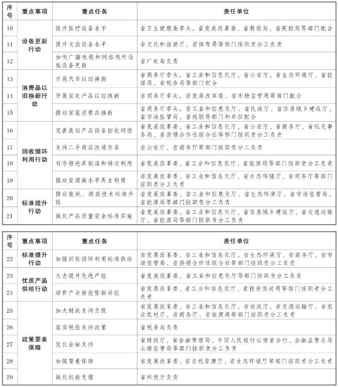云南省人民政府關于印發《推動大規模設備更新和消費品以舊換新實施方案》的通知