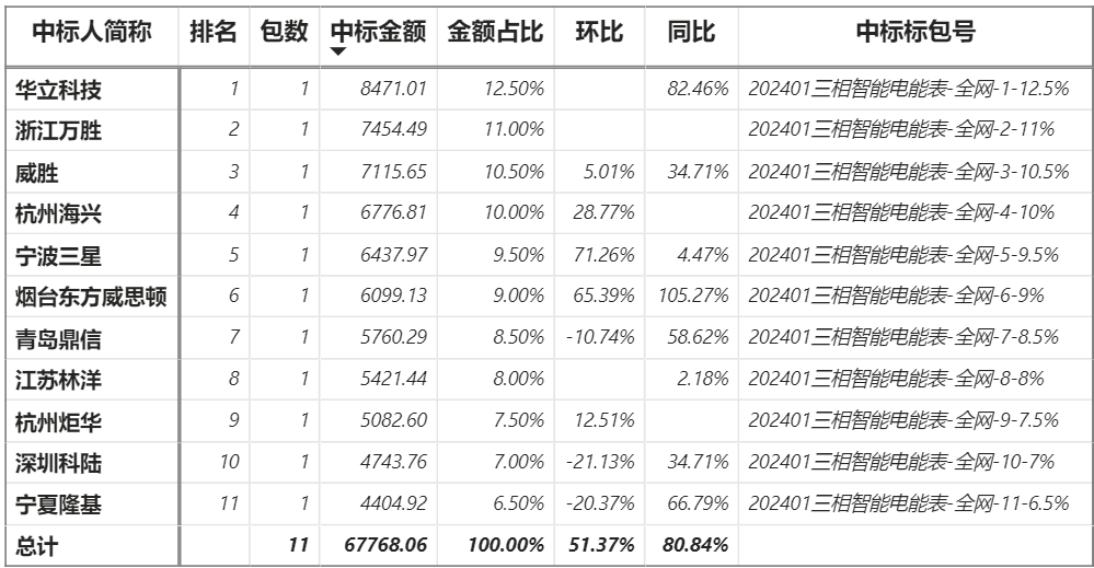 總金額6.78億元,11家企業(yè)實現(xiàn)中標,華立中標最大包8471.01萬元;