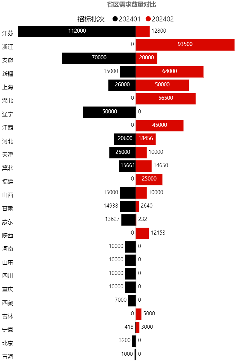 本批次的主要需求來自浙江、福建、吉林,均達到200萬只以上,以上3省需求占批次總量69%左右。