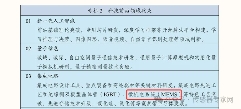 20213月,十四五規劃發布,將智能傳感器重要制造技術——MEMS(微機電系統)工藝,寫入【科技前沿領域攻關】技術項目中。